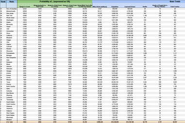 The data used here is from both the NHTSA's Fatal Accident Reporting System, and the FHWA.The ranking itself is actually very basic: it's the total population of each state divided by the number of people killed in automotive accidents for the given year (2013).
