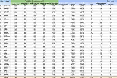 The ranking itself is actually very basic: it's the total population of each state divided by the number of people killed in automotive accidents for the given year (2013).