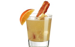 - Garnish with an orange slice and a piece of the St-Germain-infused Applewood smoked bacon.