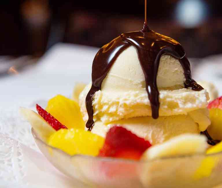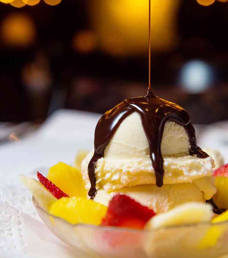 After slicing into some high-quality USDA prime meat, heat things up with a little flambe, because nothing says showstopper like your dessert lit on fire, table side. Choose from chocolate lovers, bananas Foster, cherries jubilee, or Sinatra’s strawberry flame, and watch as servers prepare your ice cream dessert on a bed of fresh fruit and set it ablaze until the sugar caramelizes on top. If dessert pyrotechnics aren’t your thing, Hy’s offers non-flaming desserts such as flourless chocolate cake, molten lava cake, coconut crème brûlée and homemade cheesecake.