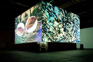 Legendary NYC cinema & dining installation Monkey Town 6 comes to Austin for a three-month run. The audience sits inside a massive 27ft cube, watching a two-hour multi-channel video program, dining on four- or five-course menus from Chef Sonya Coté (of Eden East and Hillside Farmacy). Tickets here!