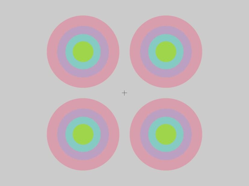 Fourth place went to "Caught inside a bubble," which employs a couple different illusions at once. It alternates colored concentric circles with monochromatic gray circles that adopt new colors through the afterimage of the colored circles.