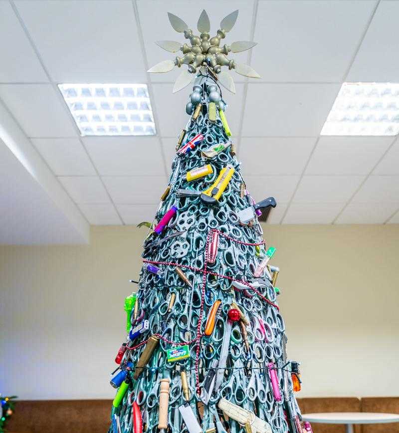 This Airport Put Up a Christmas Tree Made of Confiscated Scissors, Knives, Bullets
