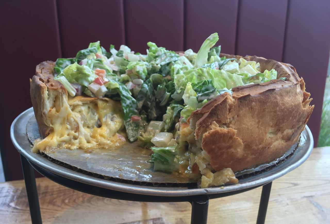 Whether you think the style was invented by Matt’s Bar or the 5-8 Club -- a debate capable of igniting a brawl in Minneapolis -- it’s a uniquely Minnesotan dish. The pizza will be as well. It's is filled with seasoned hamburger, caramelized onions, and American and mozzarella cheese. The pizza is then topped with lettuce, tomatoes, red onion, pickles, and ranch dressing.