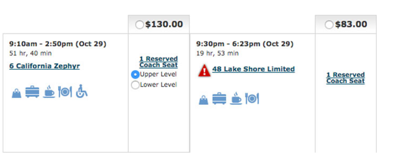 Also, traveler’s pro-tip: If you feel like upgrading to Business Class on the Lake Shore Limited, you’ll have access to a bunch of goodies, such as “seating in a dedicated car, complimentary non-alcoholic beverages and access to the Amtrak Metropolitan Lounge in Chicago.”
