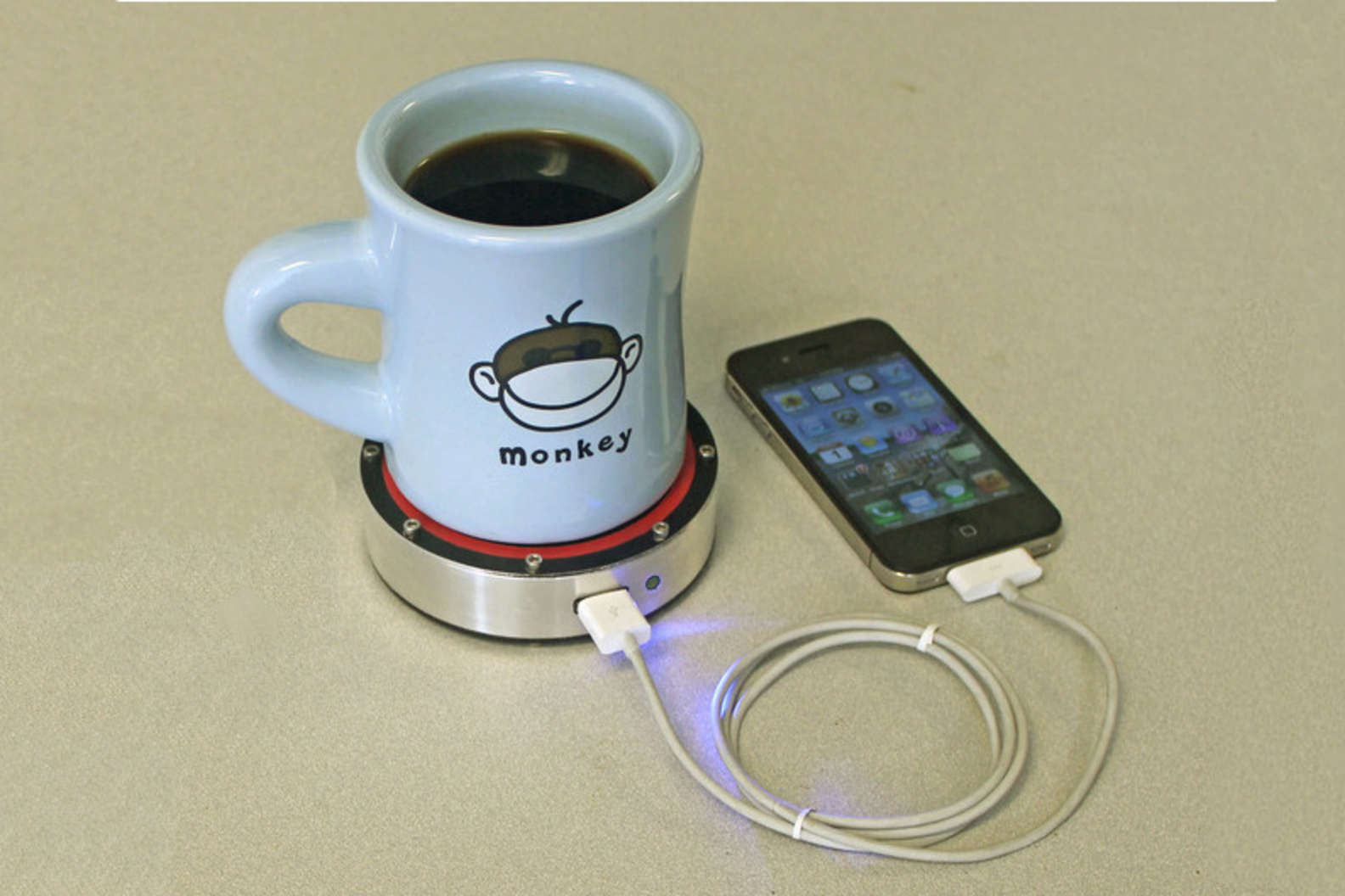 Simply place your hot or iced coffee/ tea/ Tang on the side designated for its temp (red is for warm, blue for cold), wait 30-60secs for the ready light to illuminate, connect your charger to its USB port, and let your mobile suck up the sweet, sweet power.