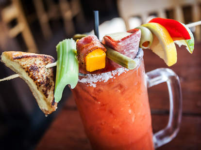 Brighten your brunch-time beverage with a bevy of juices (bell pepper, pineapple, and mango nectar, to name a few). It's sweeter than usual, but still damn good. Switch things up here.