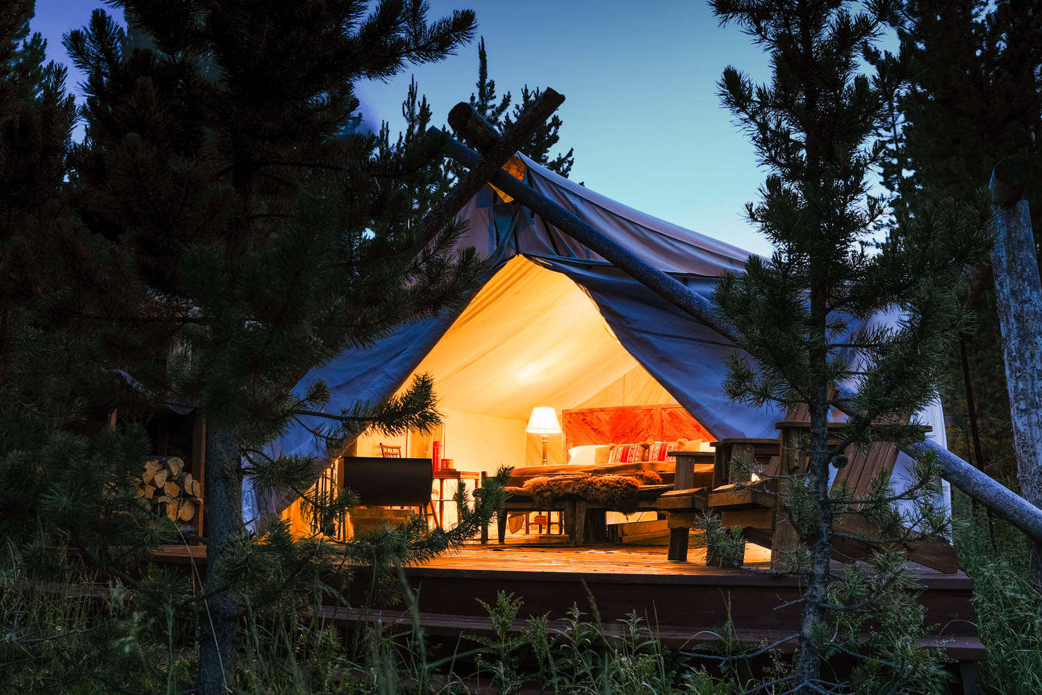 And now we come fully around to the other end of the spectrum from backcountry camping: glamping. Yellowstone and the Jackson Hole area have really leaned into the aspirational, frontier luxury vibe. Glamping is a fine option for visitors who want to partake in that rustic glamor and sleep in a bed, but still wake up with that crisp mountain air in their lungs.