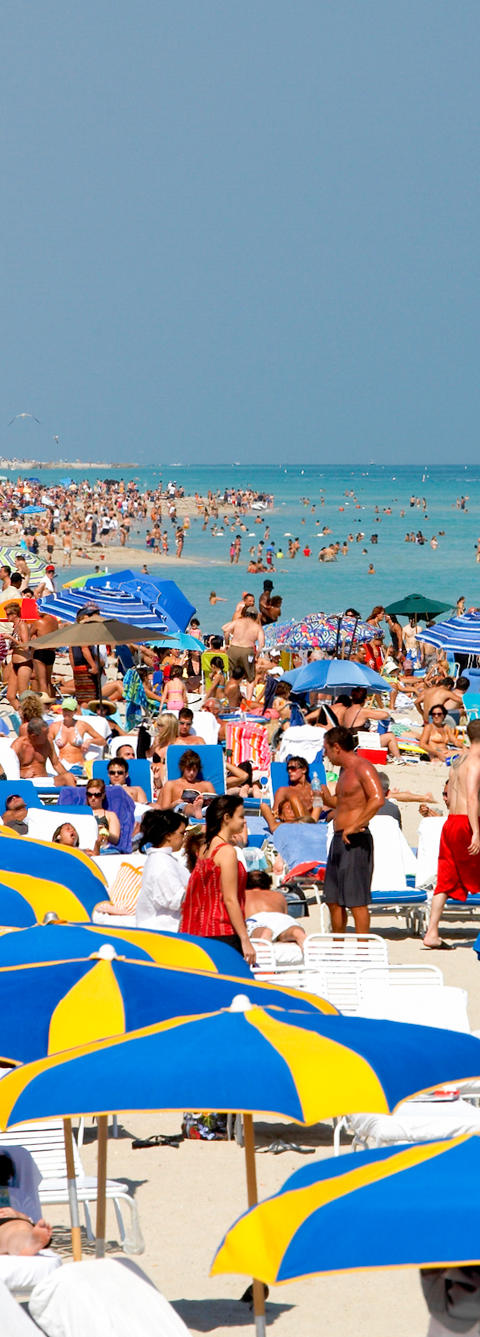 In the south, you’ve got your European models tanning topless on the sand. Up north, you’ve got your retirees born during the Harding Administration tanning nude. Everything in between is an eclectic mix along that spectrum. Always look closely at that hotel advertising itself as “minutes” from South Beach -- “minutes” could mean five, or it could mean 1,138, and your hotel is actually in Downtown Newark.