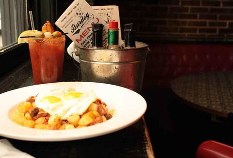 Bardog Tavern offers a brunch to end all brunches, one that’s hearty, simple, and heavy on the meat and carbs. Get a New York Strip and eggs, pancakes, French toast, or an avocado- and spicy mayo-laden lobster sandwich. The gastropub is ornamented with industrial elements, like exposed brick, red leather banquette booths, and bicycles hanging from the ceiling (hinting that a meal this indulgent might necessitate a bit of exercise). Plus there are inexpensive Bloody Marys, mimosas, and "cheap screws," should you need some hair of the bardog.